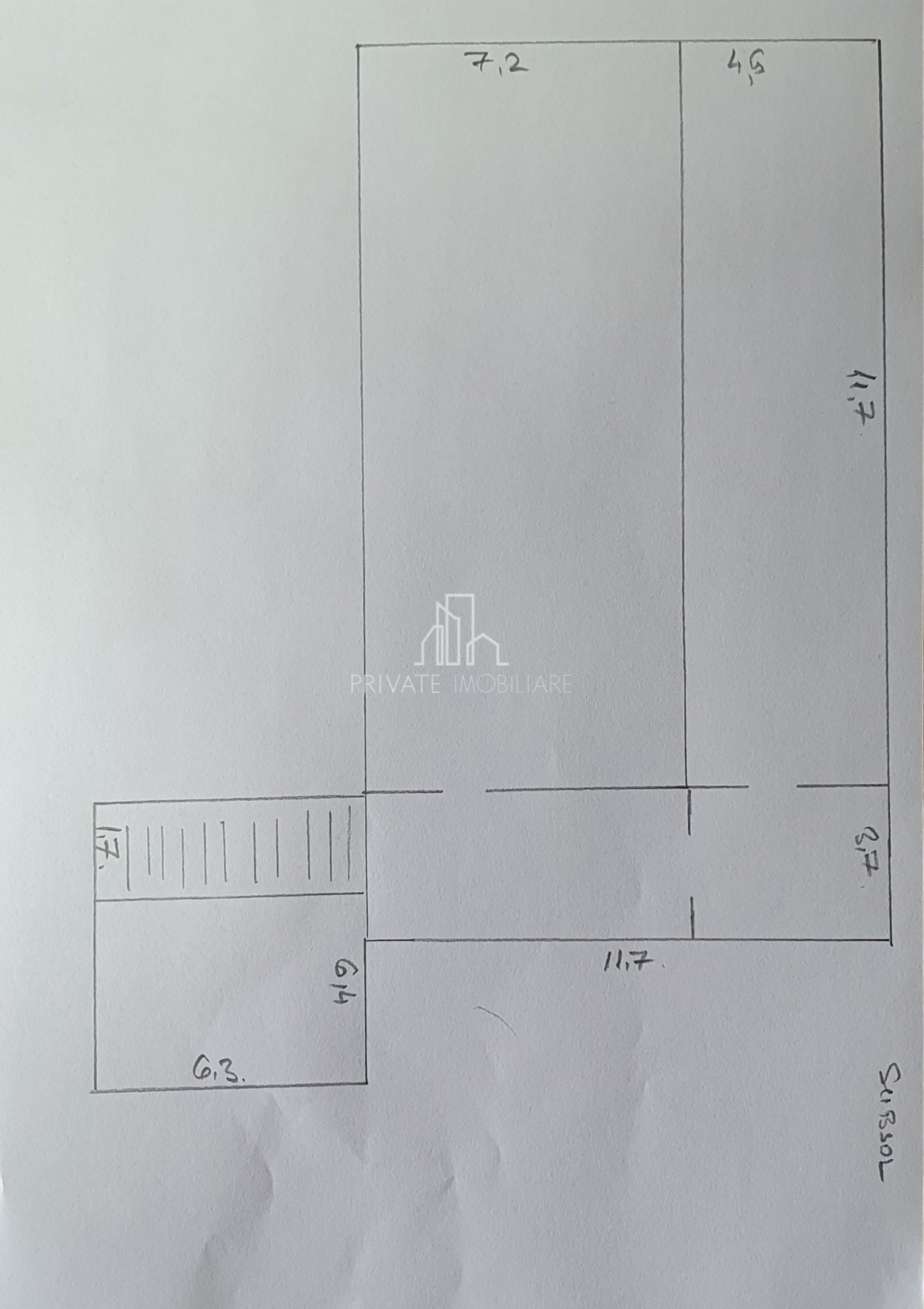 Hala are o suprafata utila de 510 Mp ( magazie), demisol de cca 300Mp, curte in spate de 100 Mp, si curte in fata pentru acces.