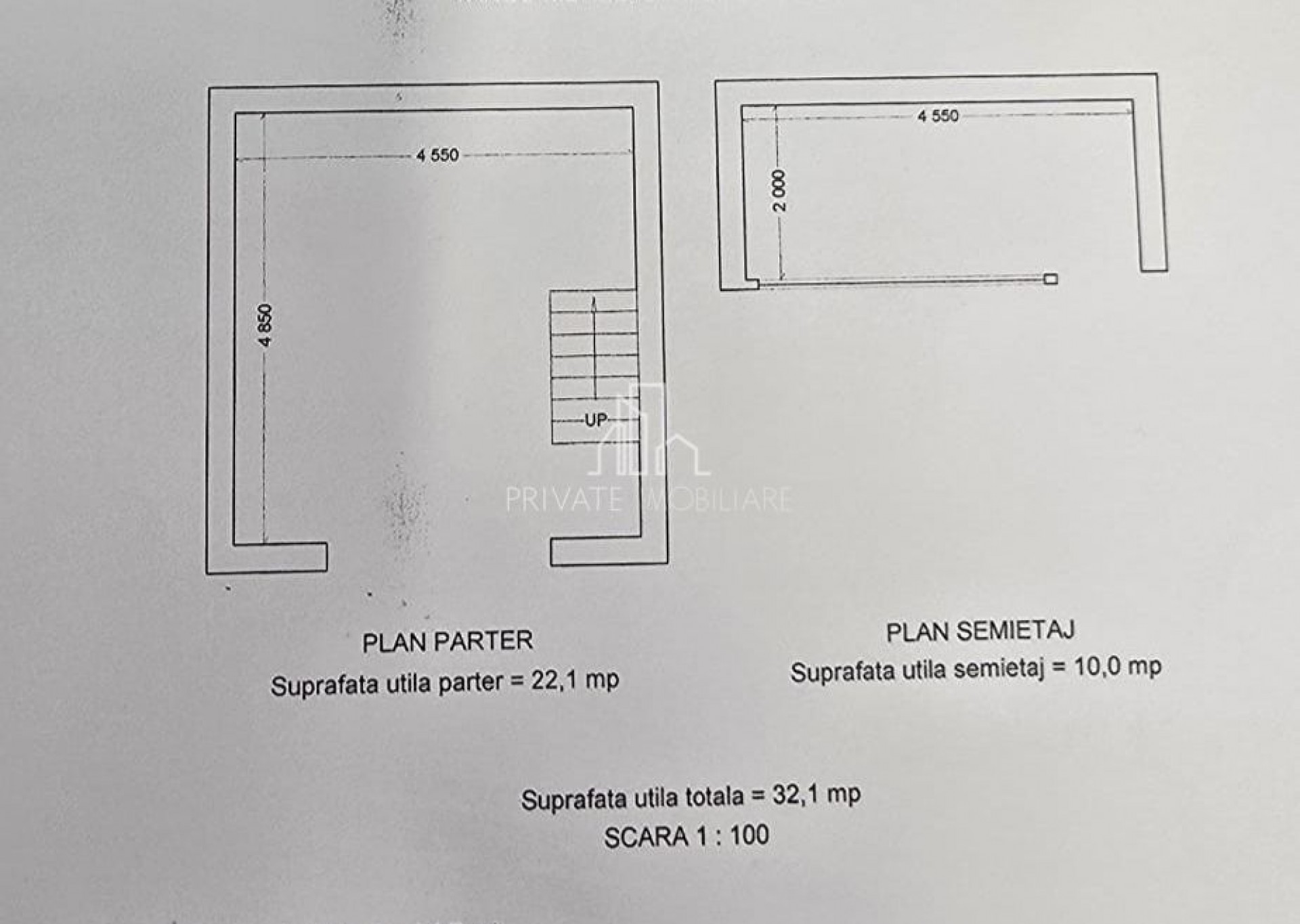Acesta are o suprafata totala de 32 Mp, la parter 22 mp iar la semietaj 10 mp(amenajat un birou).