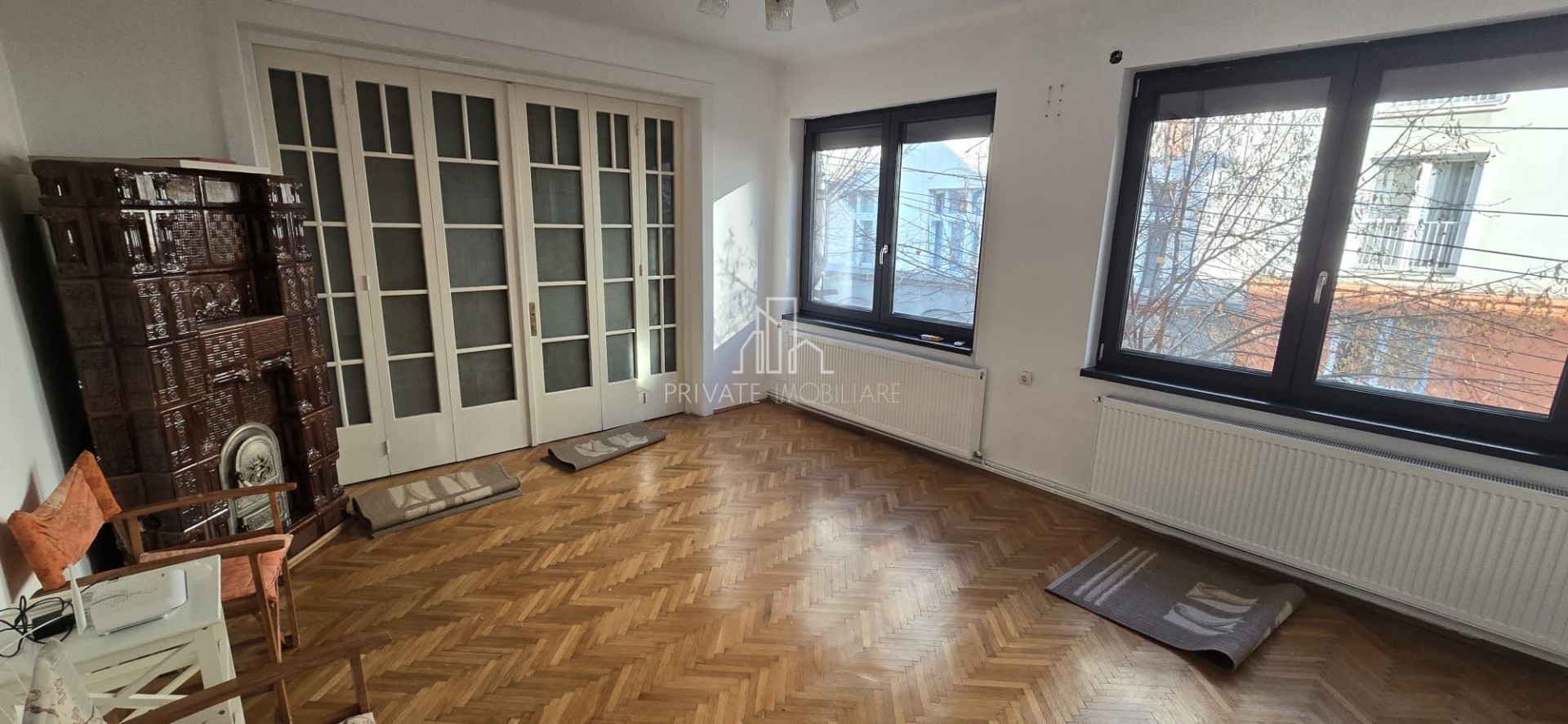 Acesta este amenajat cu parchet lemn masiv, geamuri termopan, centrala termica, geamuri termopan si izolatia exterioara a cladirii.